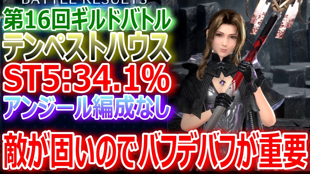 【FF7EC】第16回ギルドバトル『テンペストハウス STG5:34.1%』アンジール編成なし★敵が固いのでバフデバフが重要★【エバクラ380】 敵が固い('Д') ■関連動画 ・第16回ギルドバトルST3/ST4 ht…