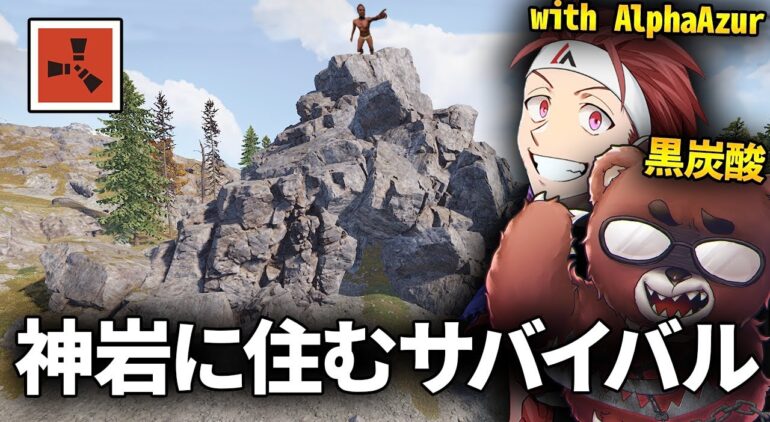 史上最強の『神岩』に住むサバイバル生活 with AlphaAzur/黒炭酸【Rust コラボ実況】#1