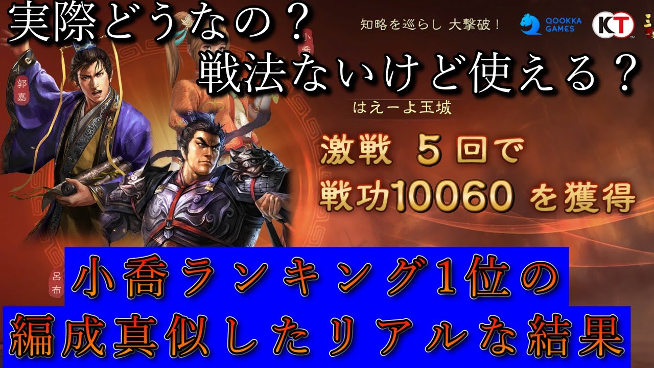 10/10編集【三國志真戦編成解説】無双小喬ランキング1位のネカマ由紀恵式ごくぜん陣を作ってみたリアル